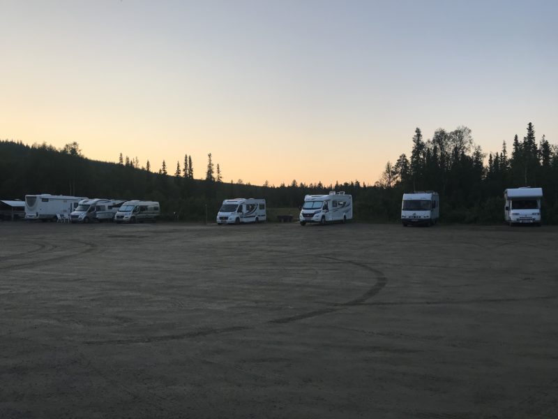 Nach einem Besuch des traditionellen, samischen Treffpunkts, haben wir hier auch die Nacht verbracht. Als Stellplatz diente uns der Parkplatz vor dem Treffpunkt auf dem auch schon ca. 8 andere Wohnmobile standen.